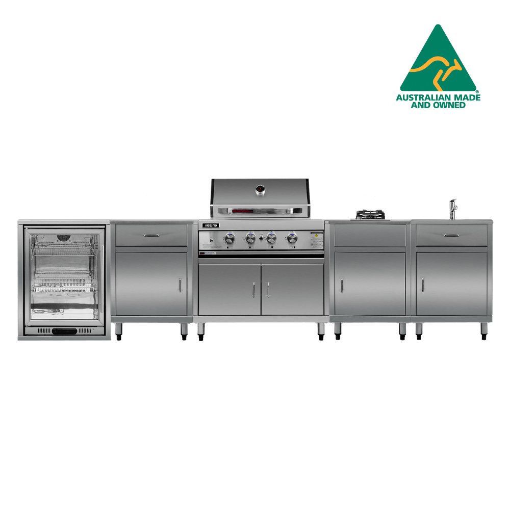 All BBQs and the cabinets are manufactured from 304-grade stainless steel, ensuring exceptional durability and easy cleaning for years of enjoyment.