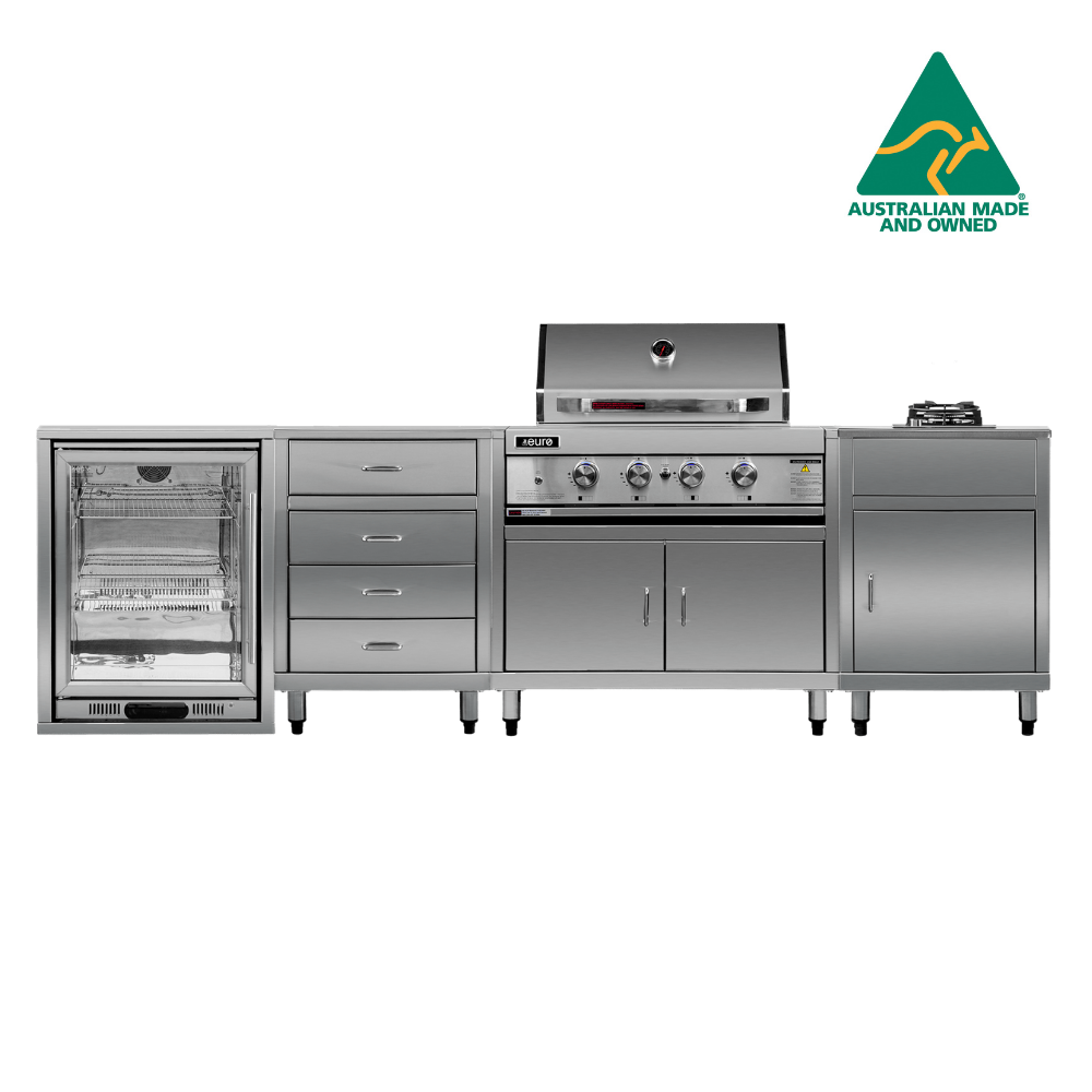 All BBQs and the cabinets are manufactured from 304-grade stainless steel, ensuring exceptional durability and easy cleaning for years of enjoyment.